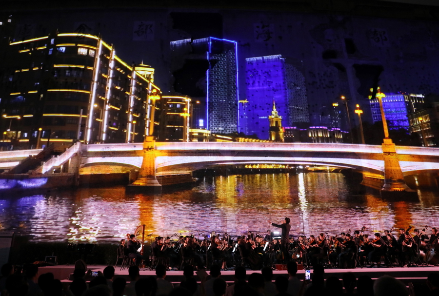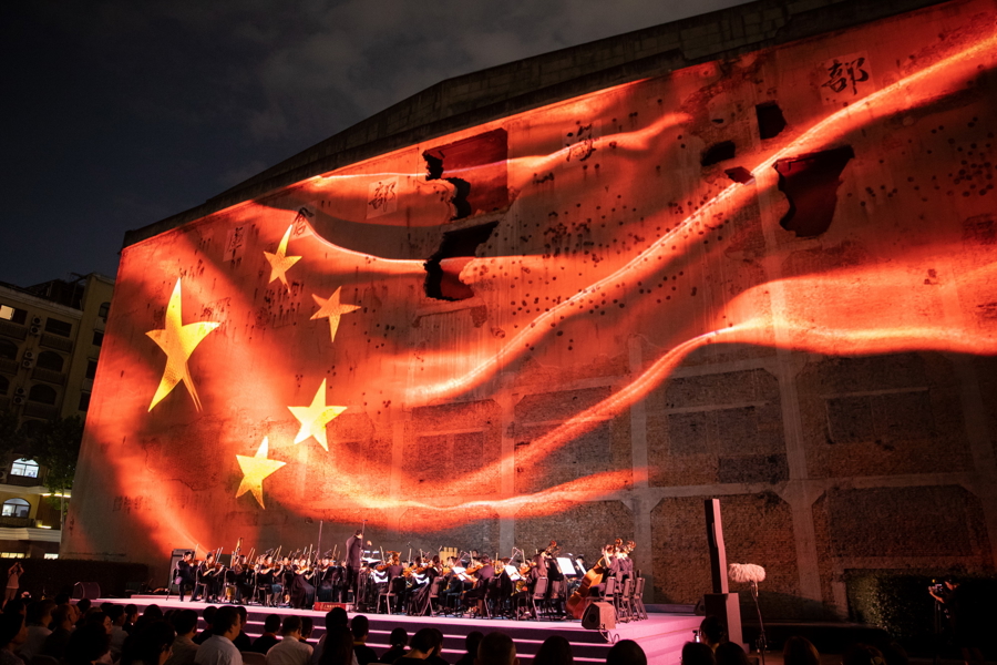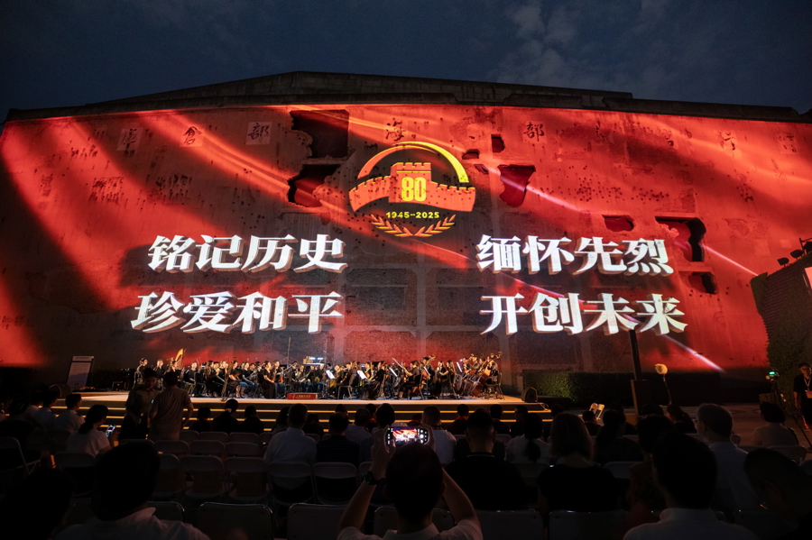 静安区纪念中国人民抗日战争暨世界反法西斯战争胜利80周年主题光影音乐会。新民晚报 周馨/摄(下同)