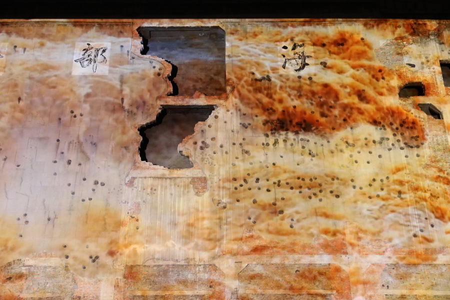 “这面墙本身是历史的见证者,表面保留了许多战争留下的痕迹,承载着深厚的历史记忆。我们并没有试图掩盖或修饰这些痕迹,而是充分利用墙体的质感,通过光影叠加的方式,将视觉叙事与建筑本身的历史底蕴有机结合,从而创造出一种在其他场所无法复制的、独一无二的艺术效果。”幻维数码创意总监章喆说。