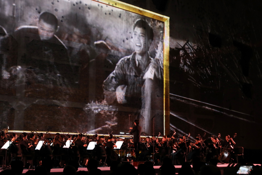 新民晚报记者获悉,此次主题光影音乐会以四行仓库西墙为天然幕布,通过16台超高清投影机以接近8K的分辨率呈现出一场震撼的视觉盛宴。光影流转中,光影诗篇《铭记历史·薪火相传》拉开了本场音乐会的序章,全面展现从十四年抗战历史到英雄群像,再到和平丰碑的故事脉络。
