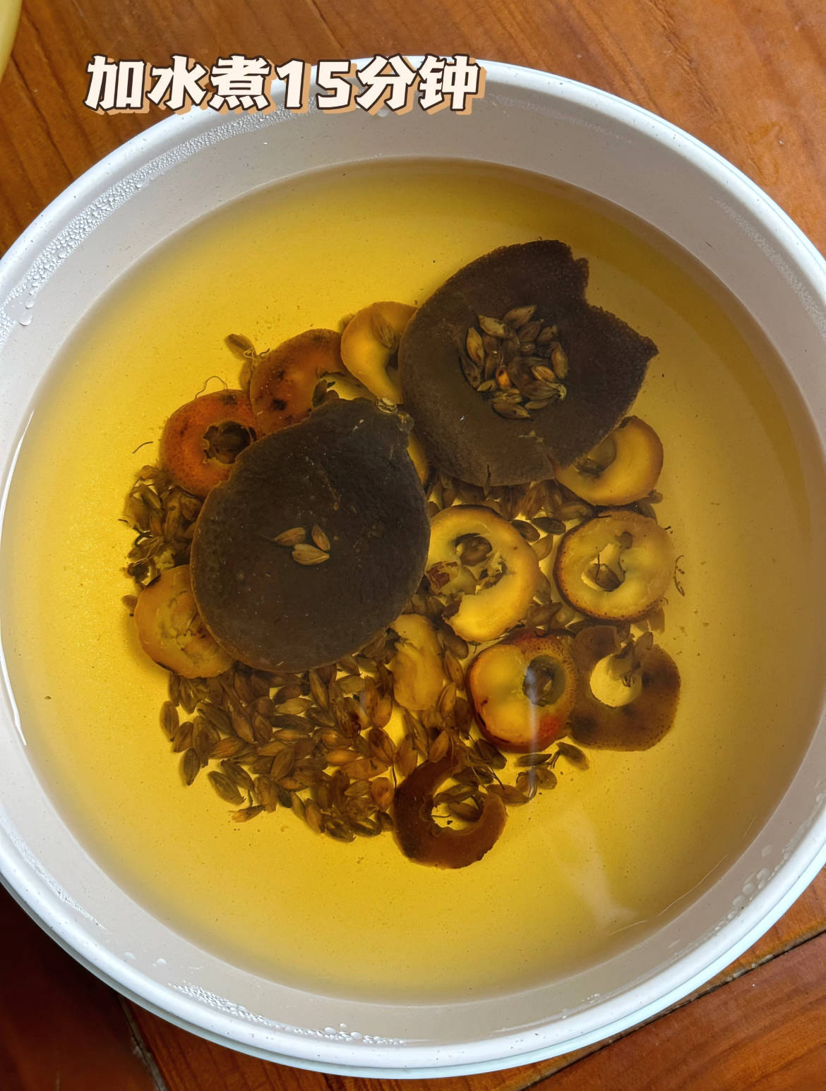 于是,我妈每天用山楂、麦芽、陈皮按比例煮水,凉了之后给小侄子当水喝。
